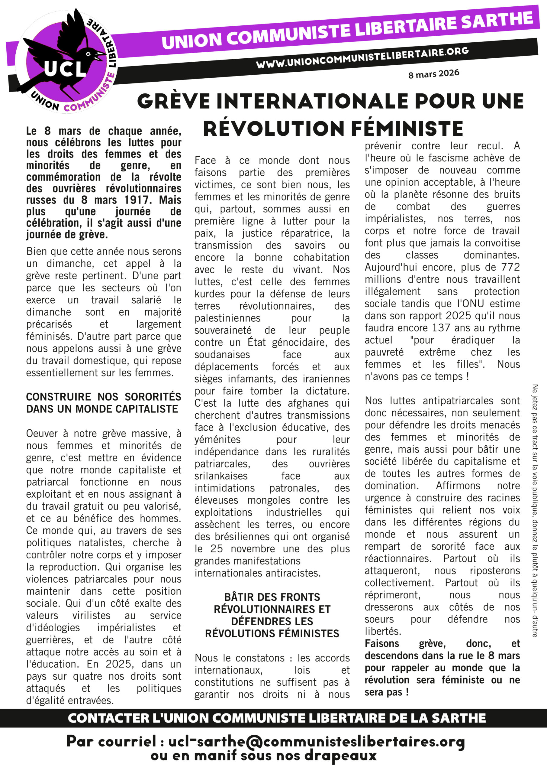 Nous serons près du village féministe place des Jacobins de 10h à 11h puis à la manif qui part à 11h